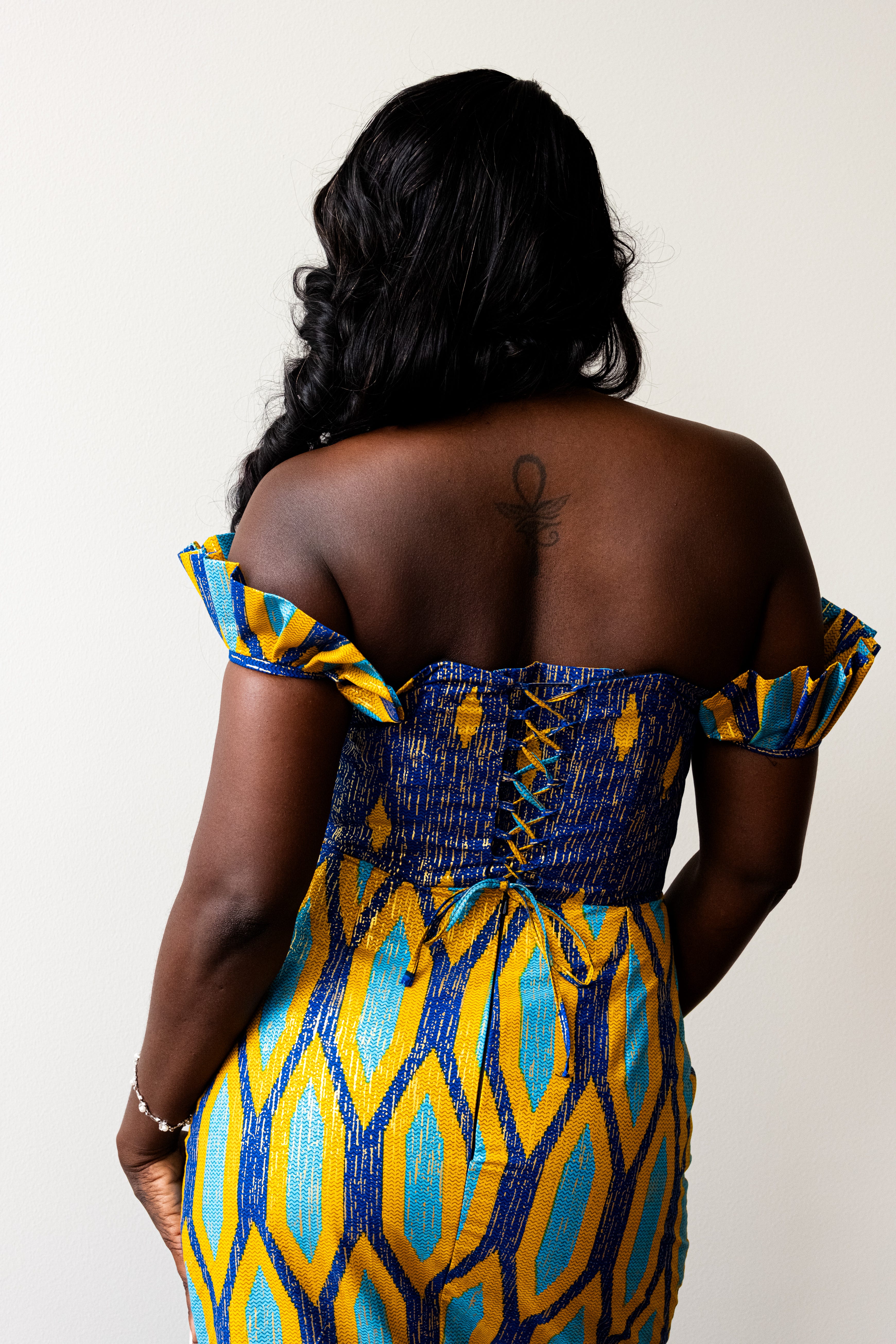 I met Apphia Mpay in spring 2025 when we both took a 6-week speech writing workshop through CEI Women’s Business Center. In one of Apphia’s final speeches she talked about how much she loved designing clothing for people, how she loved giving them confidence and individuality — from how she was speaking about getting dressed, I knew that she got ‘it’. This summer we got together to shoot one of her custom designed dresses in my new studio, and last month she joined me to talk about how she got started as a designer, and how she’s passing her knowledge to a new generation of stitchers.