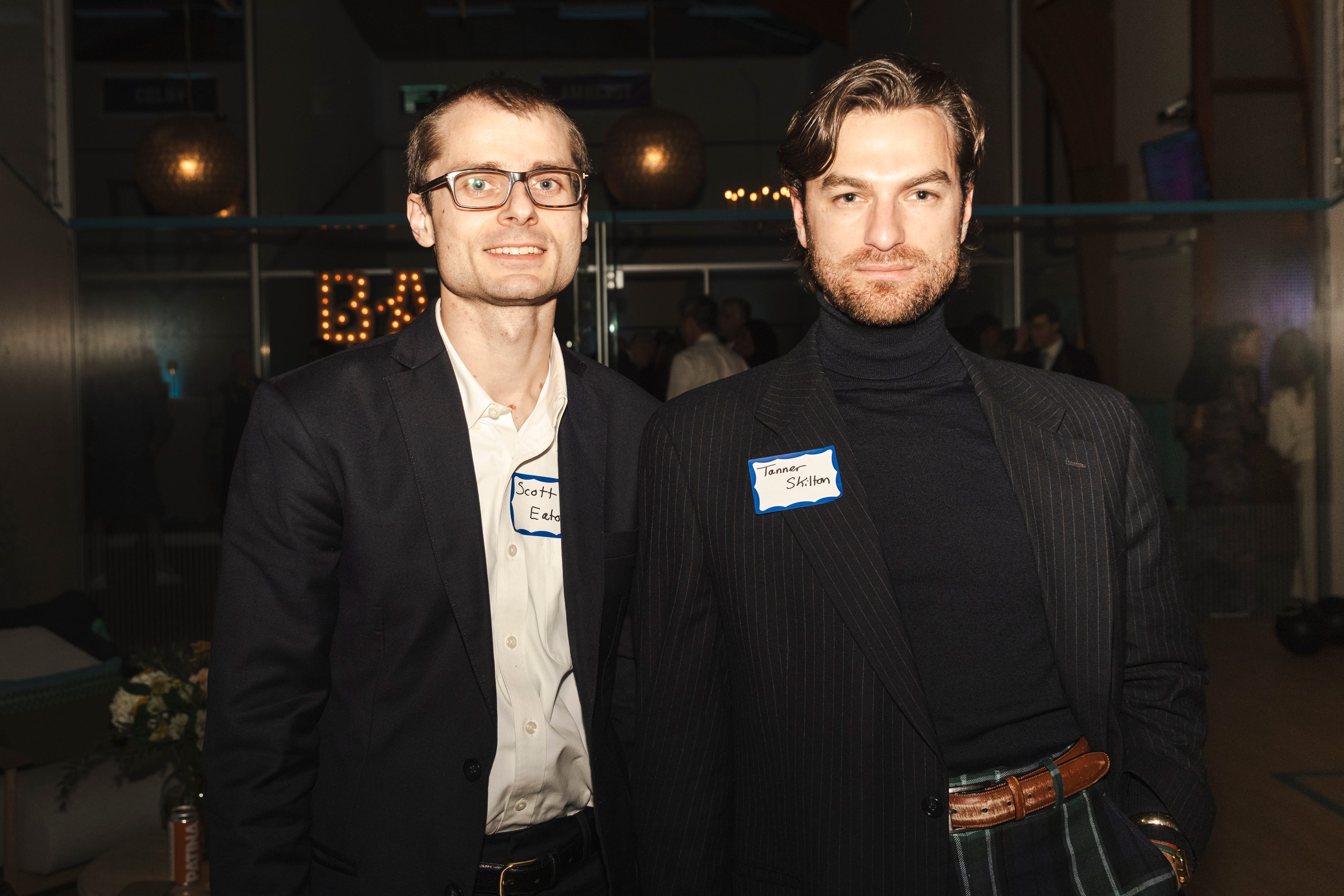 Tanner Skilton arrived at a fundraiser gala in December 2025 wearing a black turtleneck, an oversized blazer, and green & navy tartan pants. I was shooting the event and asked for a photo so I could capture the look. While editing the event images I ran into the shot of him, and was reminded how much I loved his look that night. And thanks to an age-old party accessory — the nametag — I was able to track him down to ask for an interview.